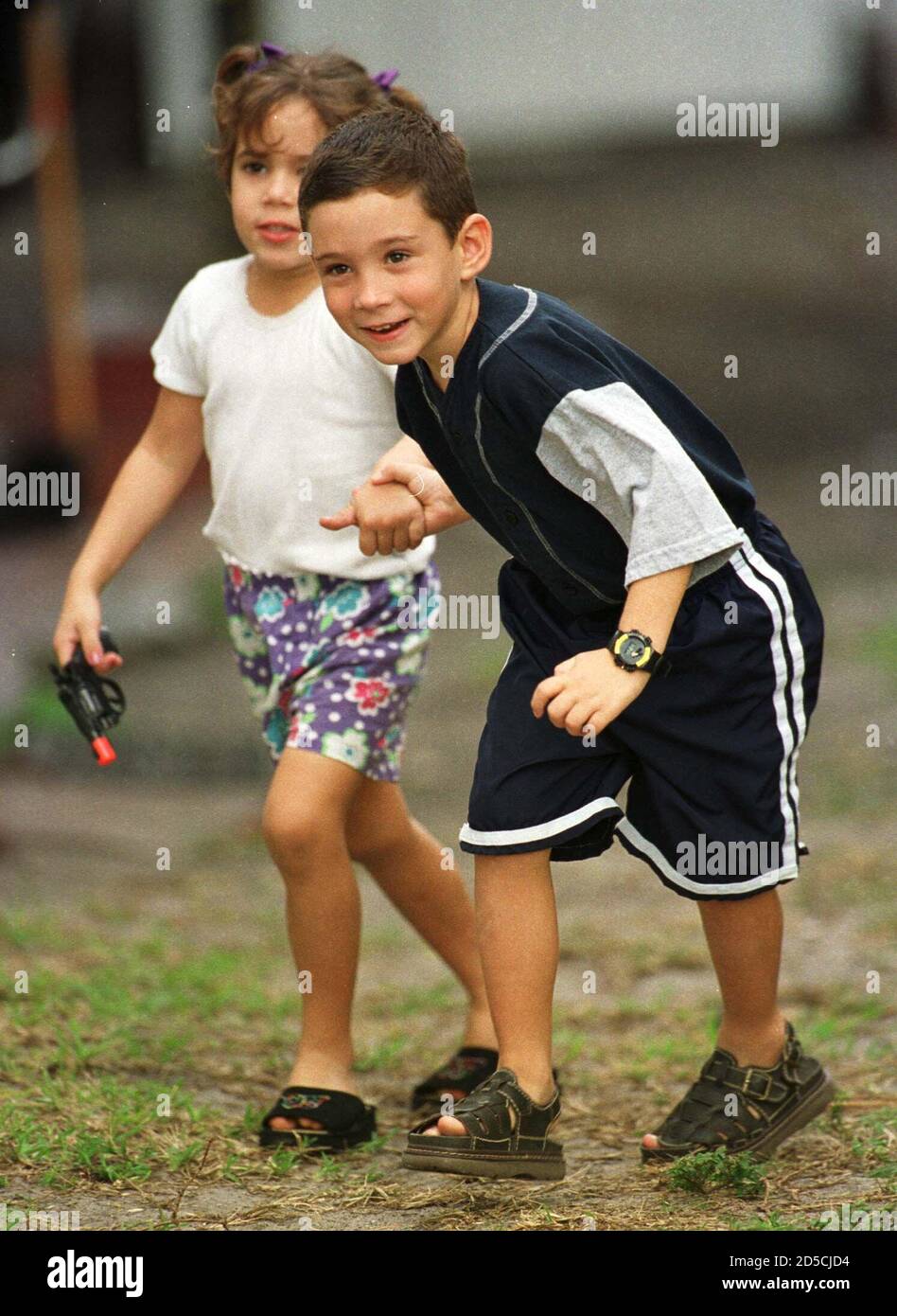 Six Year Old Elian Gonzalez R Plays With An Unidentified Second Cousin In The Front Yard Of His Family Home In Miami Elian S Fate Remains Remains In The Hands Of The U S State Department